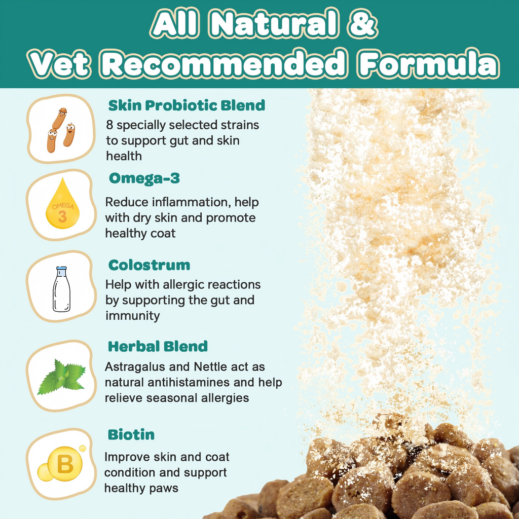 Introduce an all-natural, vet-recommended powder formula to your pup to address the root causes of allergies in their body.