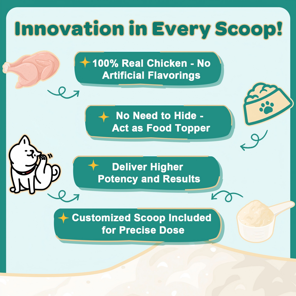 Simply mix it with your dog’s food for easy, precise dosing - no more struggling with picky eaters or hard-to-swallow treats.